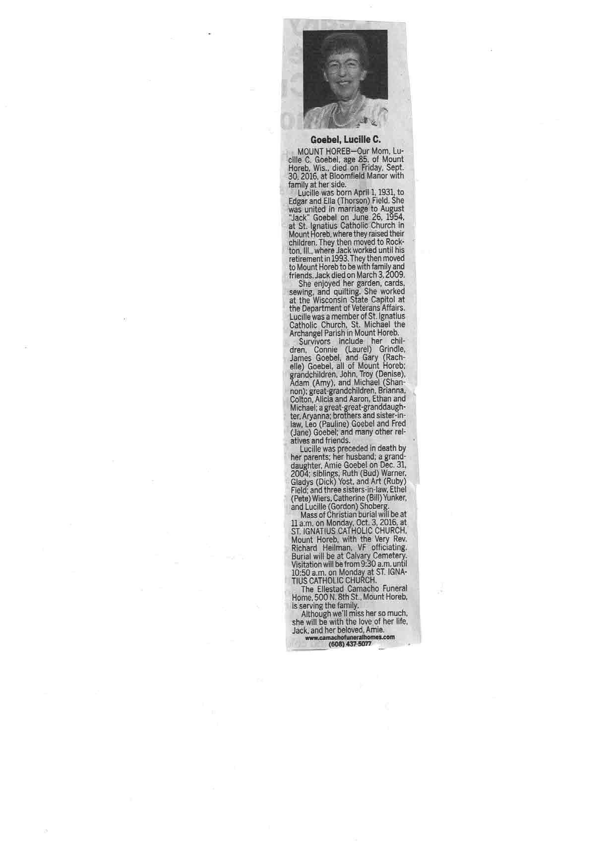 Goebel, Lucille C., Obit