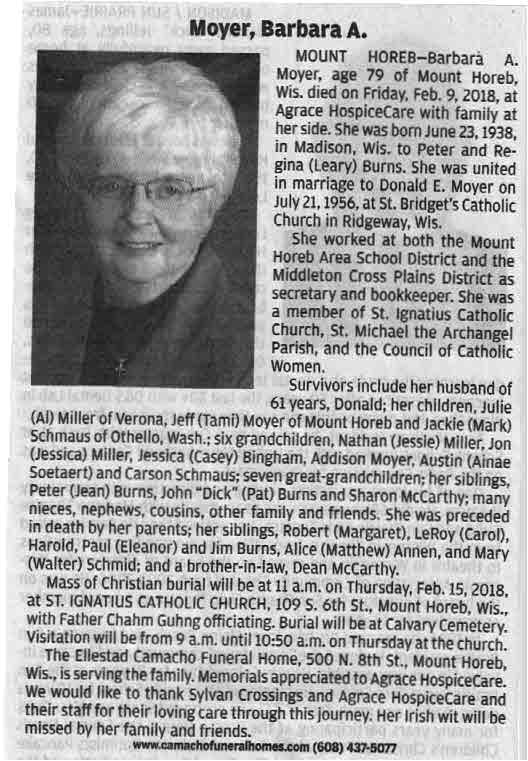 Burials On The Web - Calvary Cemetery - St. Ignatius Parish - Mt. Horeb, WI