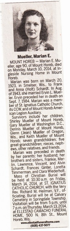Mueller, Marian E. - Obit, obit