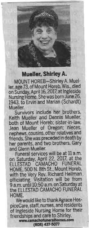 Mueller, Shirley A., Obit