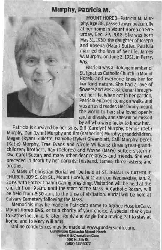 Murphy, Patricia M., Obit