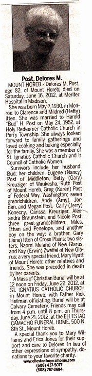 Burials On The Web - Calvary Cemetery - St. Ignatius Parish - Mt. Horeb, WI
