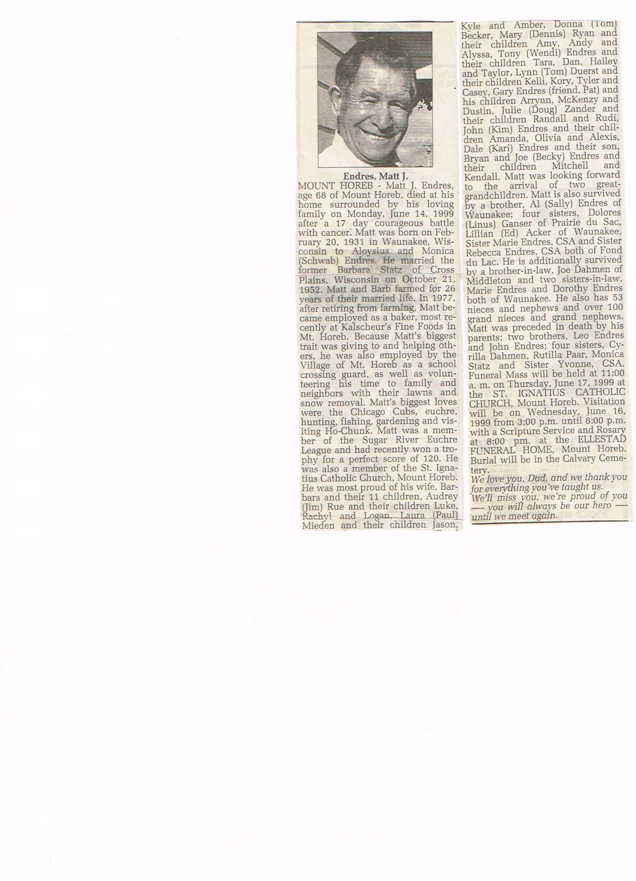 Endres, Matt J. , Obit