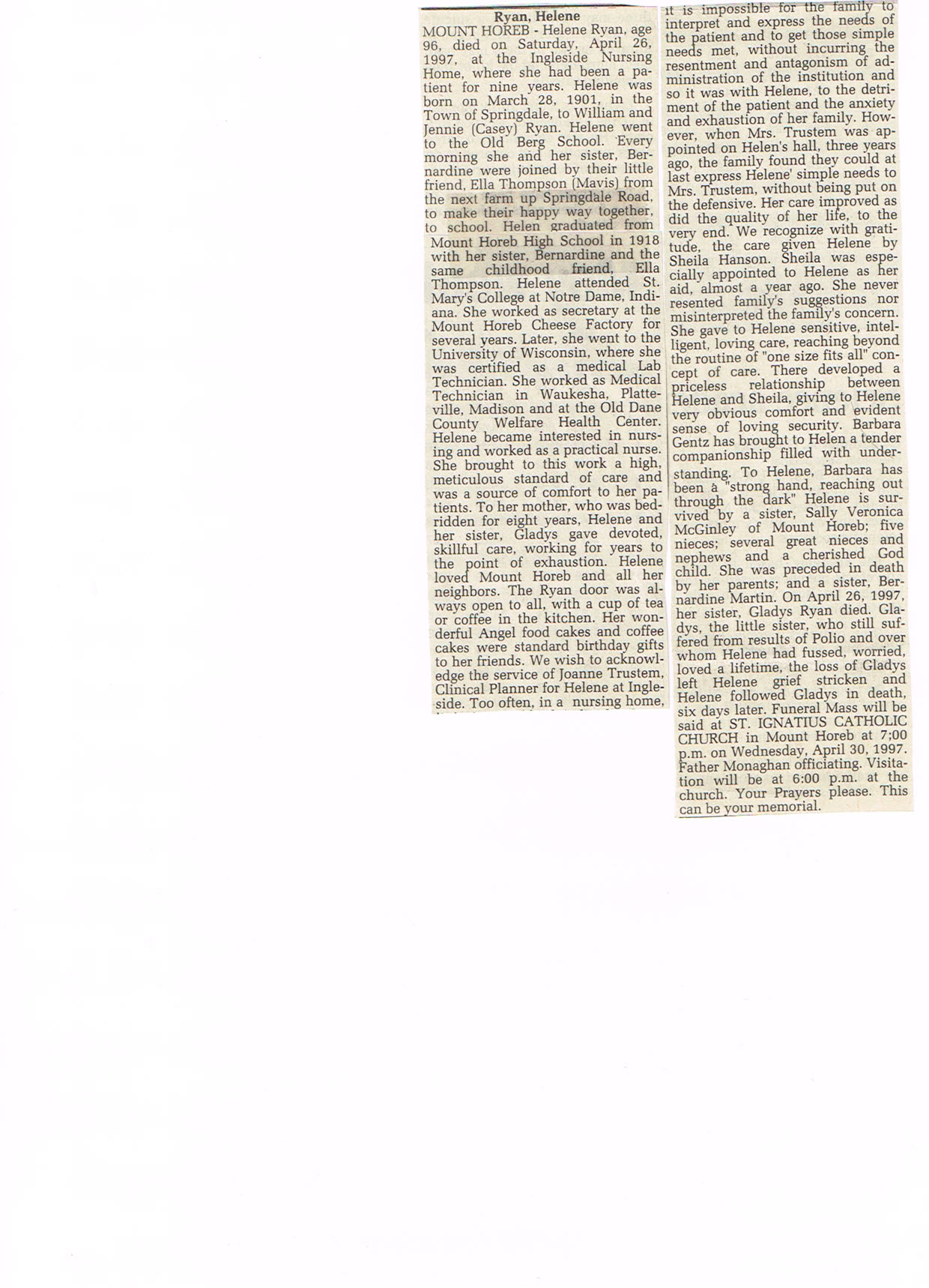 Burials On The Web - Calvary Cemetery - St. Ignatius Parish - Mt. Horeb, WI