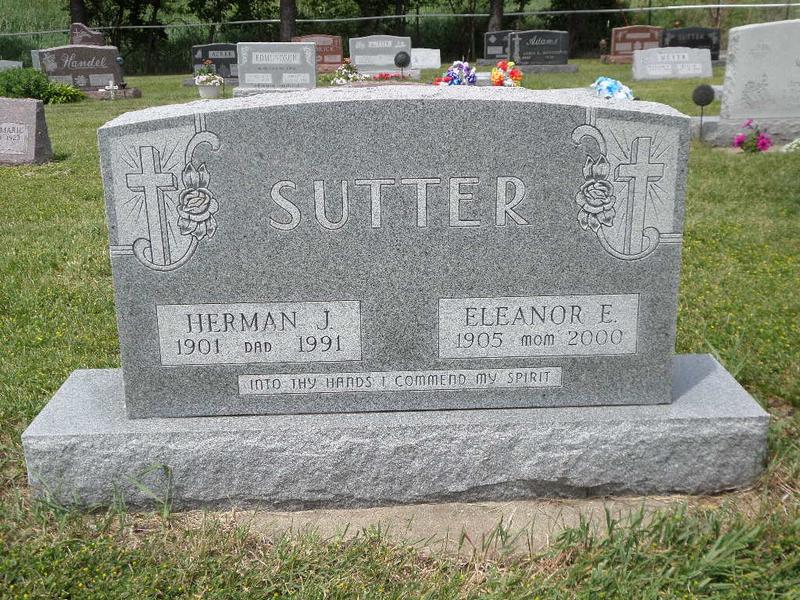 Sutter, Herman J. & Eleanor E. - Monument back, KW:20&21