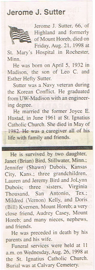 Sutter, Jerome J., Obit