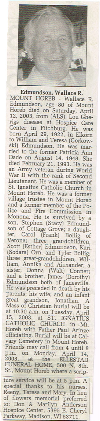 Edmunson, Wallace R. , Obit