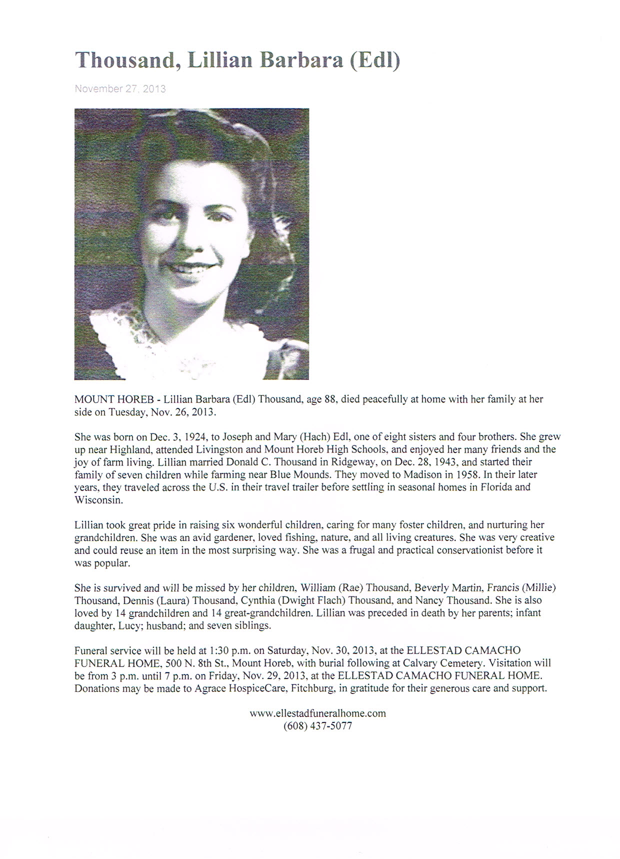 Thousand, Lillian B., Obit