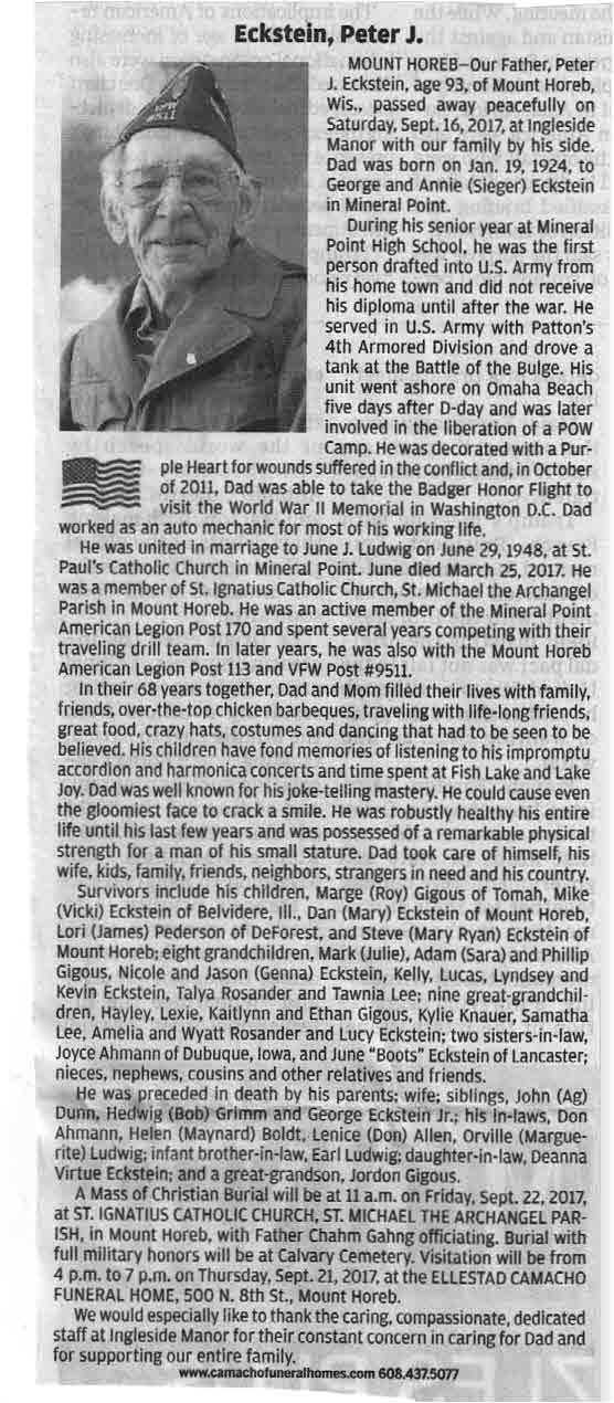 Eckstein, Peter J., Obit
