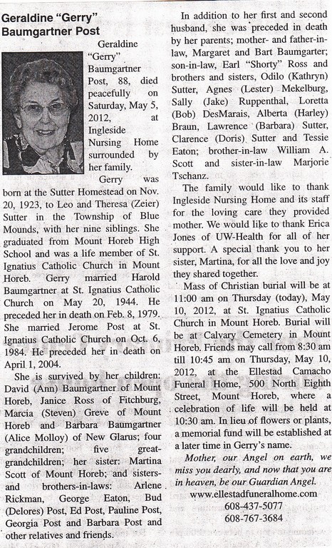 Baumgartner, Harold D. & Geraldine M. - Monument, GW:10&11