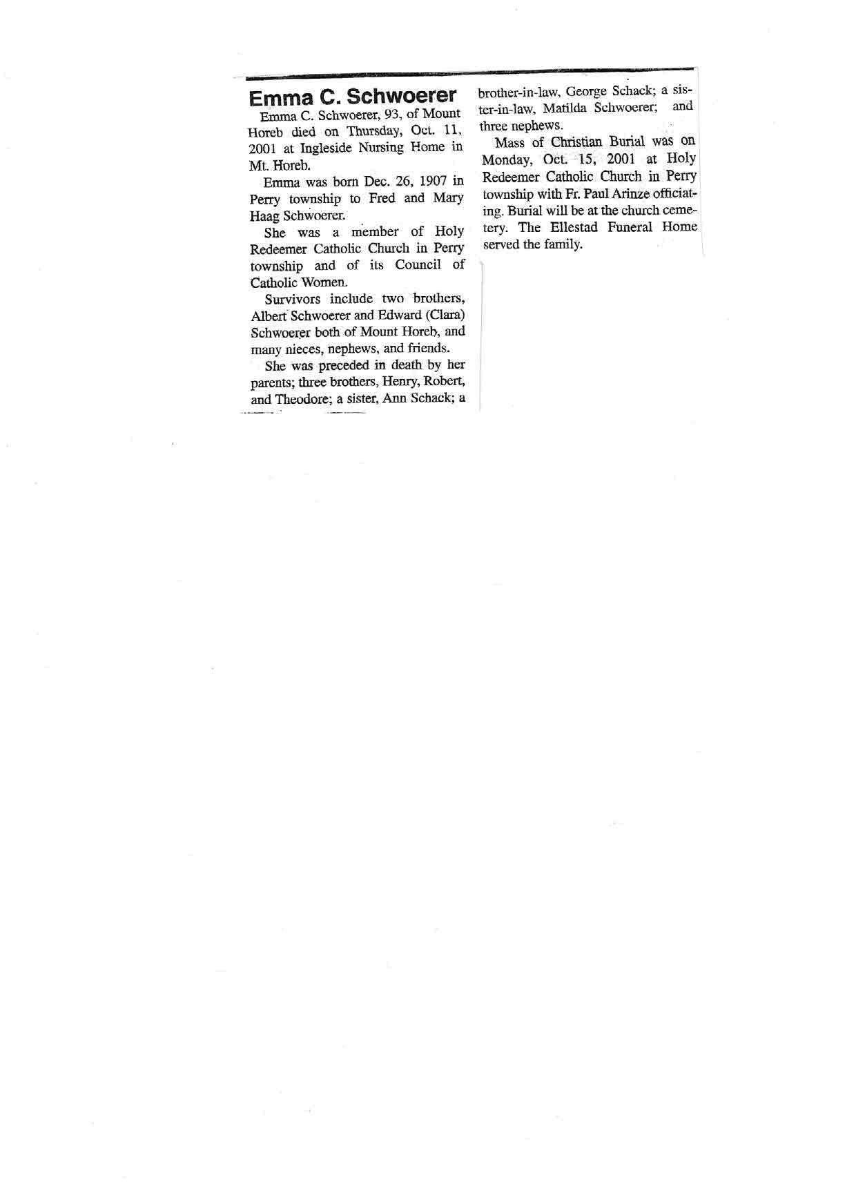 Schwoerer, Emma C., Obit