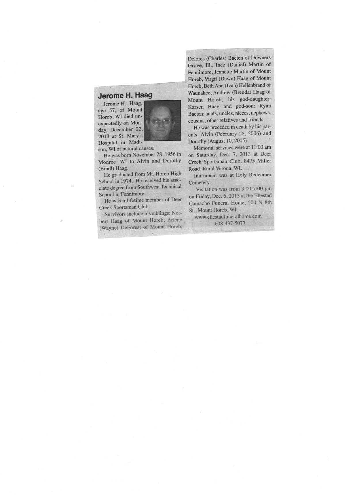 Haag, Jerome H., Obit